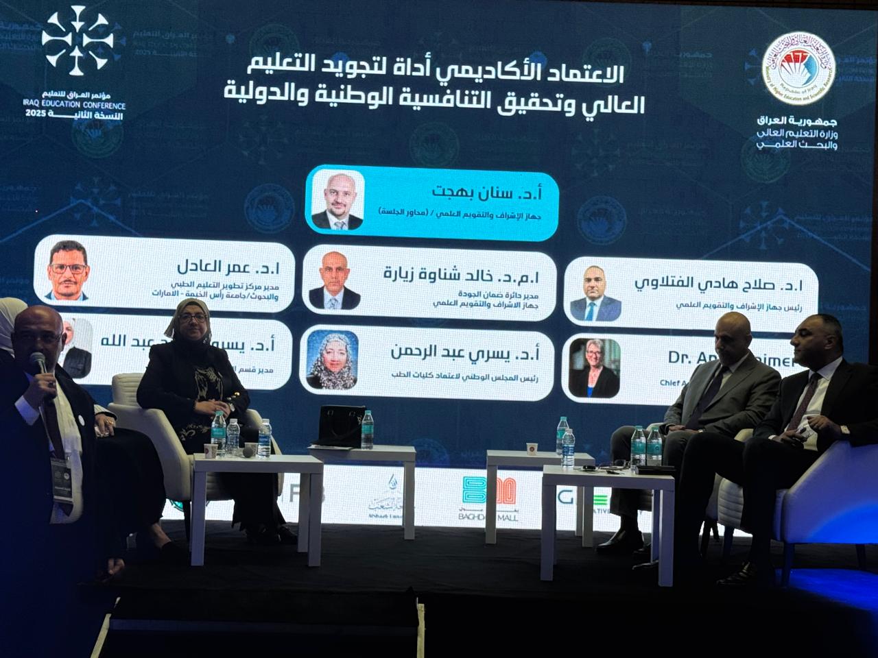 During a panel discussion at the Higher Education Conference / Second Edition on Saturday, October 11, 2025, entitled “ Academic accreditation is a tool for improving higher education and achieving national and international competitiveness”, the President of the National Council for Accreditation of Medical Colleges (NCAMC) participated alongside senior leaders from the Scientific Supervision and Evaluation Authority / MOHESR. The session highlighted the importance of ongoing quality improvement in developing higher education programs at Iraqi universities. The NCAMC president emphasized the importance of stakeholders` opinions and suggestions in enhancing the quality of the accreditation process across all its aspects, describing them as a compass that guides the process in the right direction.